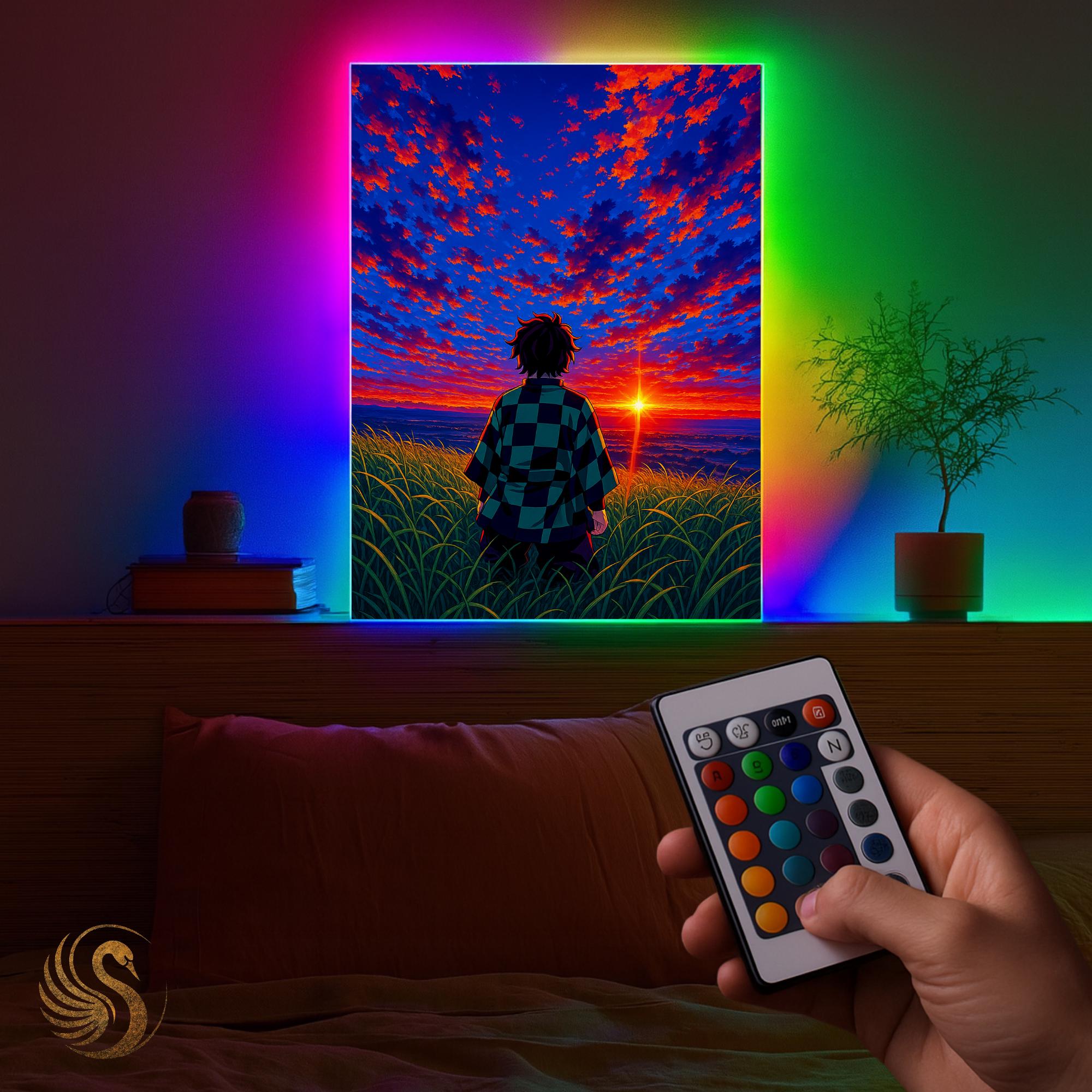 RGB LED Anime Metal Poster: 4K Otaku Room Decor
